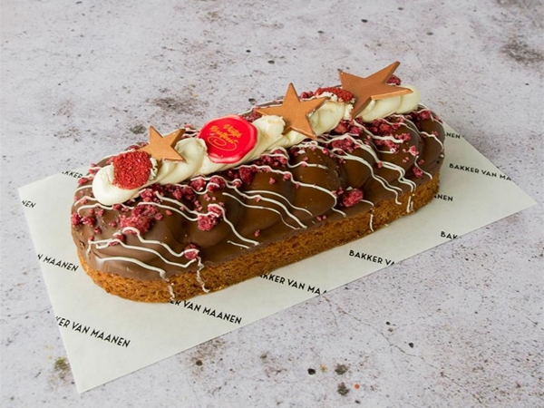 Een feestje op tafel! Gevuld met amandelspijs, karamel, karamelbavaroise en gedecoreerd met kerstchocolade. Verkrijgbaar vanaf 8 december.